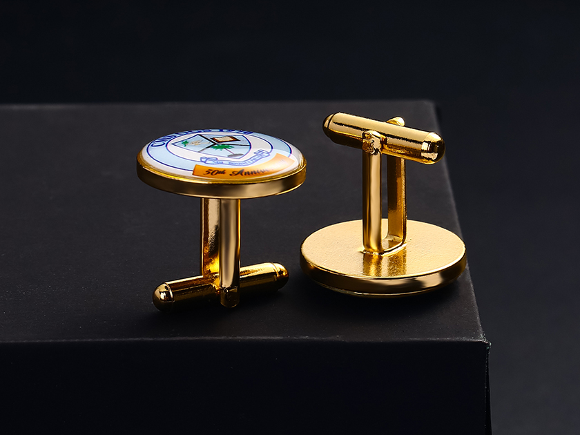 【制作工藝】:沖壓 【上色工藝】:印刷滴膠 【電鍍顏色】:金色 【背面工藝】:亮面 【產(chǎn)品配件】:袖扣腳